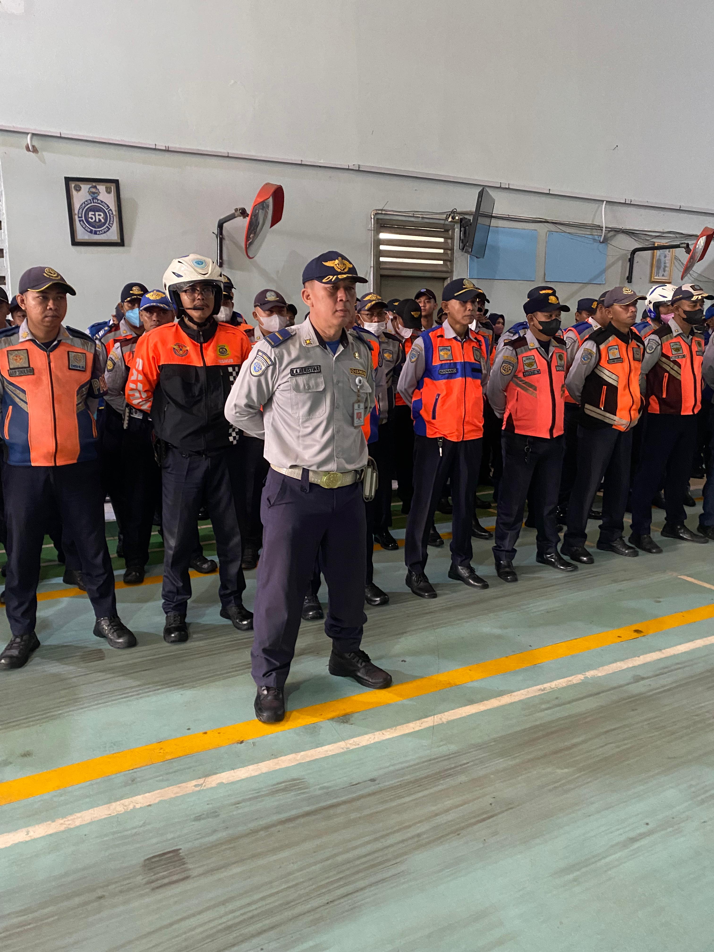 Depok, 9 April 2024 - Demi antisipasi lonjakan arus lalulintas pada malam takbiran, Dinas Perhubungan Kota Depok mengadakan apel bersama yang diadakan pada Selasa, 9 April 2024 di Gedung Pengujian UPT Pengujian Kendaraan Bermotor (PKB) Jatimulya, Kota Depok.