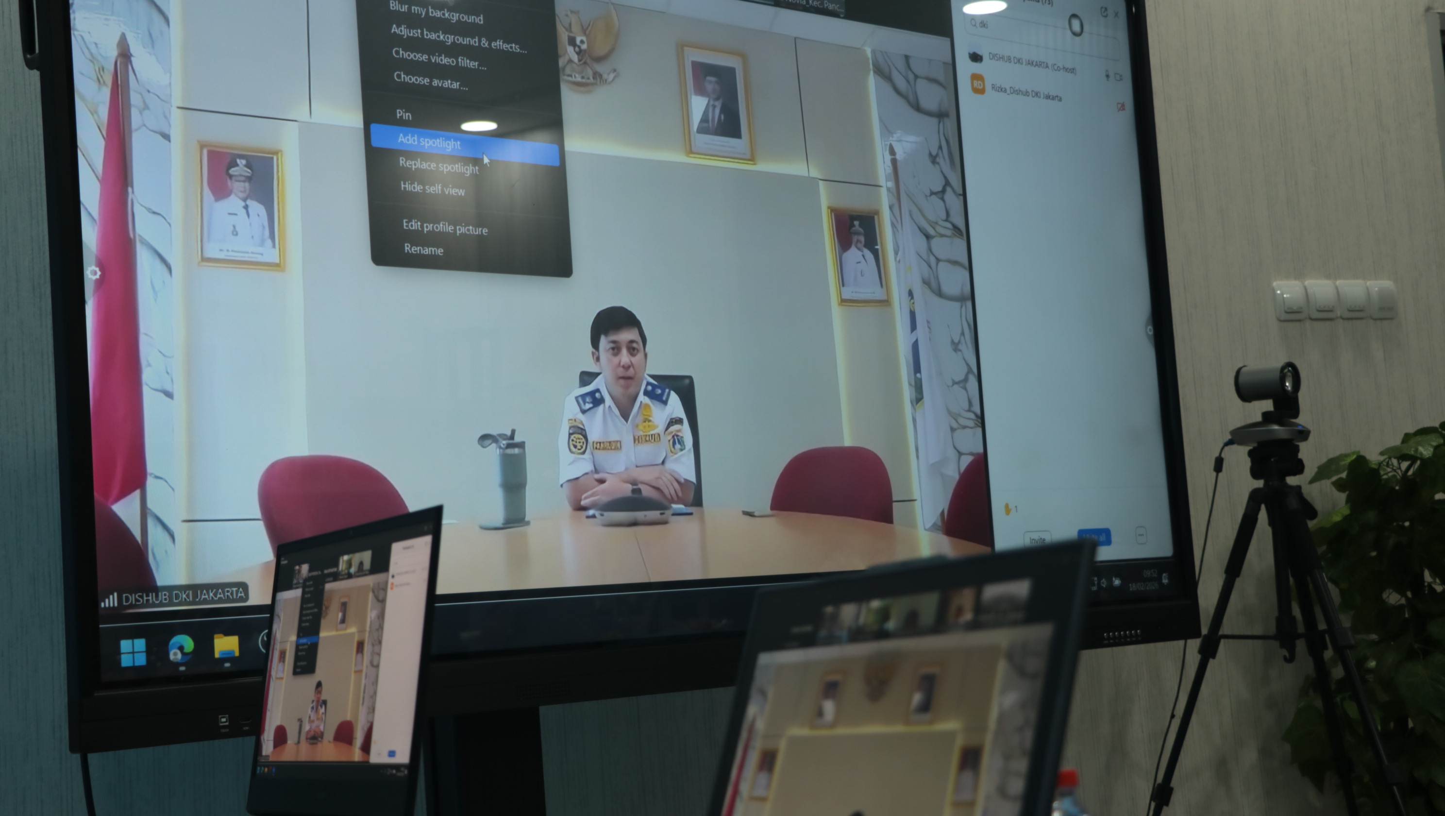 Hadir secara daring melalui Zoom dalam kegiatan tersebut antara lain Sekretaris Daerah Kota Depok, Inspektur Daerah Kota Depok, Kepala Bappeda Kota Depok, Kepala Dinas PUPR Kota Depok, Kepala Dinas Perumahan dan Permukiman Kota Depok, Kepala Dinas Lingkungan Hidup dan Kebersihan Kota Depok, Kepala Dinas Perlindungan Anak Pemberdayaan Masyarakat dan Keluarga Kota Depok, Kepala Dinas Komunikasi dan Informatika Kota Depok, Kepala Dinas Pendidikan Kota Depok, Satuan Polisi Pamong Praja Kota Depok, Kepala DPMPTSP Kota Depok, Dinas Kesehatan Kota Depok, Kapolres Metro Kota Depok, Korsatpel Terminal Jatijajar Depok, serta para Kepala Stasiun di wilayah Kota Depok yaitu Stasiun Depok, Stasiun Citayam, Stasiun Depok Baru, Stasiun Pondok Cina, dan Stasiun Universitas Indonesia.