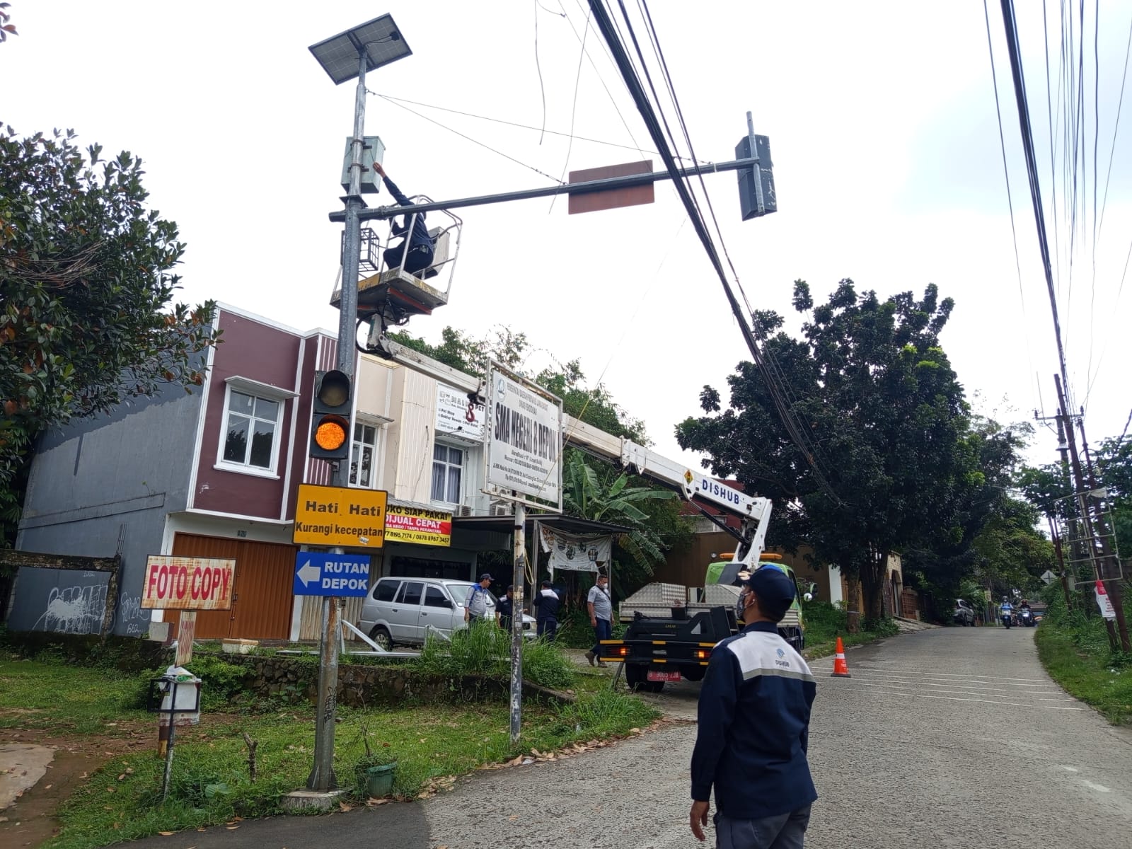 Dishub Kota Depok Lakukan Perbaikan Warning Light di Jalan M. Nasir Cilodong