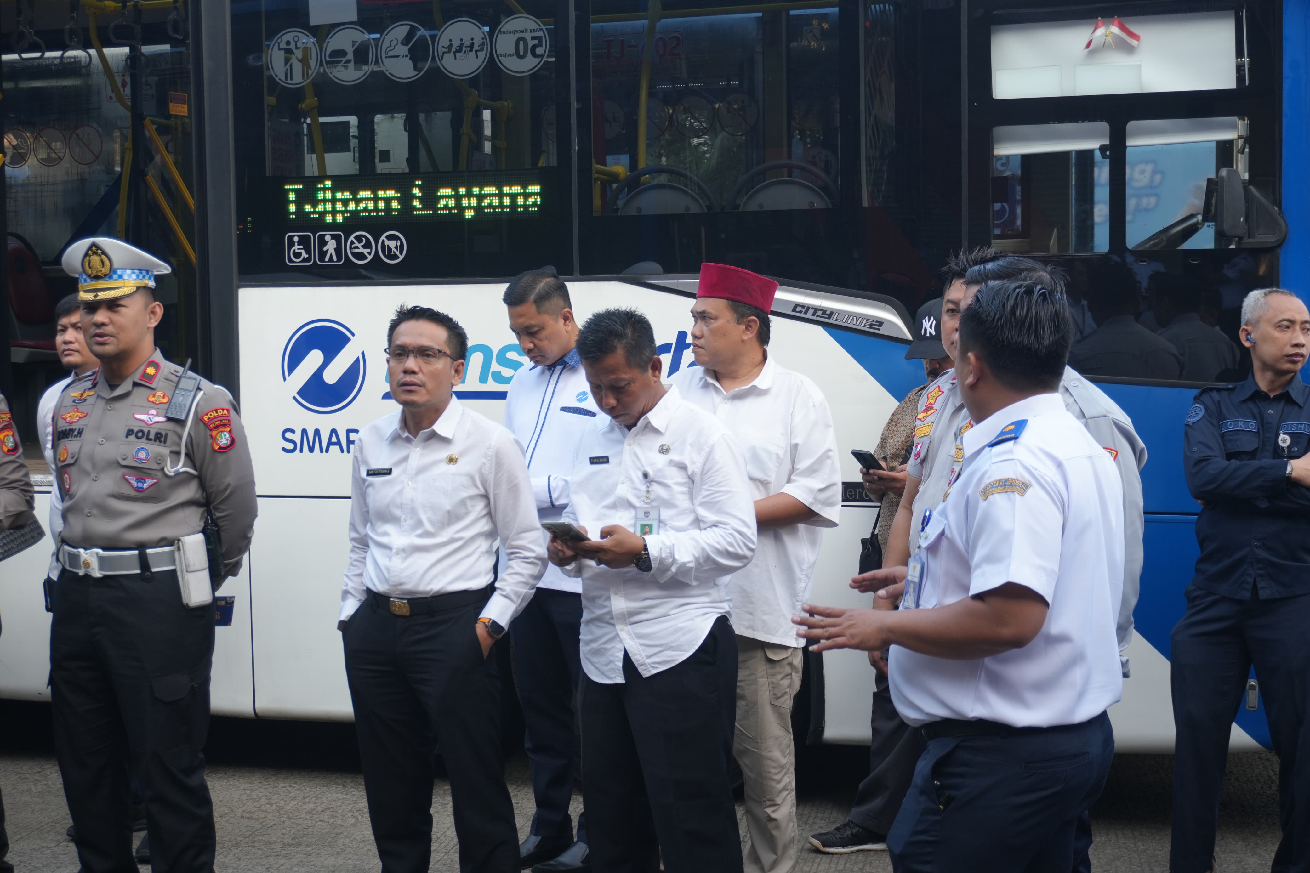 Wakil Wali Kota Depok Chandra Rahmansyah beserta Kadishub Kota Depok Zamrowi menghadiri peresmian rute TransJakarta D41 Sawangan-Lebak Bulus, yang bertempat di Terminal Transjakarta Lebak Bulus, Jakarta Selatan Pada Rabu, 04 Juni 2025. Acara tersebut diresmikan oleh Wakil Gubernur DKI Jakarta, Rano Karno.