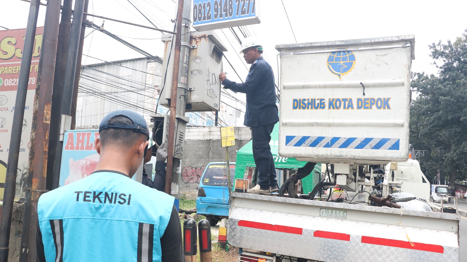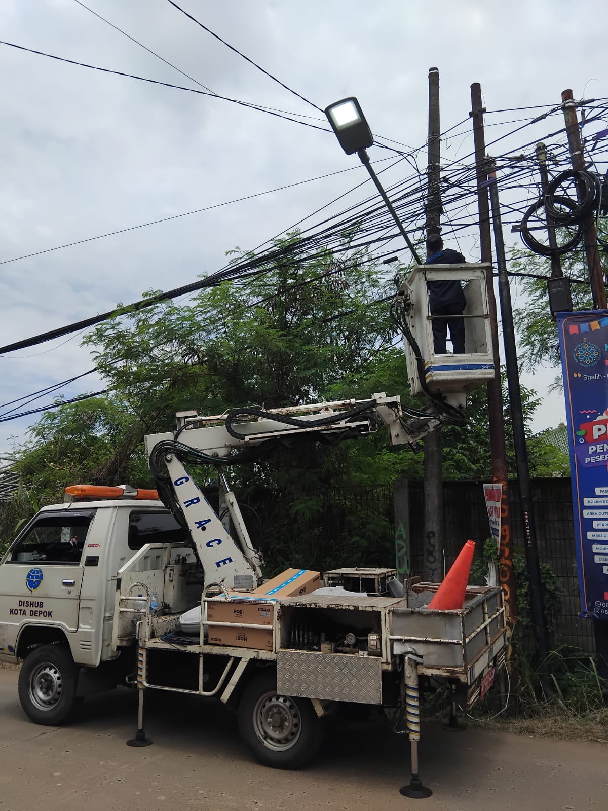 Lampu Penerangan Jalan Mati, UPTD PJU Dishub Kota Depok Lakukan Perbaikan