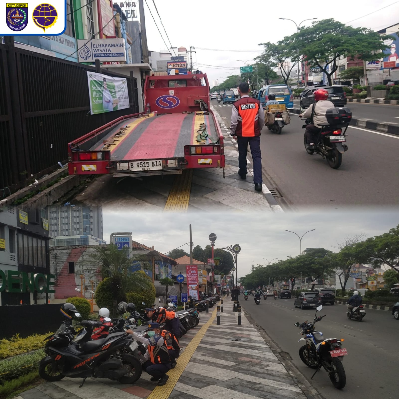 Patroli Dishub Kota Depok Menertibkan Kendaraan Yang Parkir Tidak Pada Tempatnya di Jalan Margonda Raya