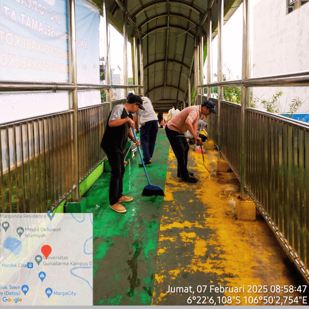 Jumat 07 febuari 2025- TIM teknis lalin DISHUB Kota Depok Membersihkan JPO di jl. Margonda yang berlokasi di dekat Kampus Gunadharma. Hal ini dilakukan agar memberikan rasa nyaman bagi warga pengguna JPO,